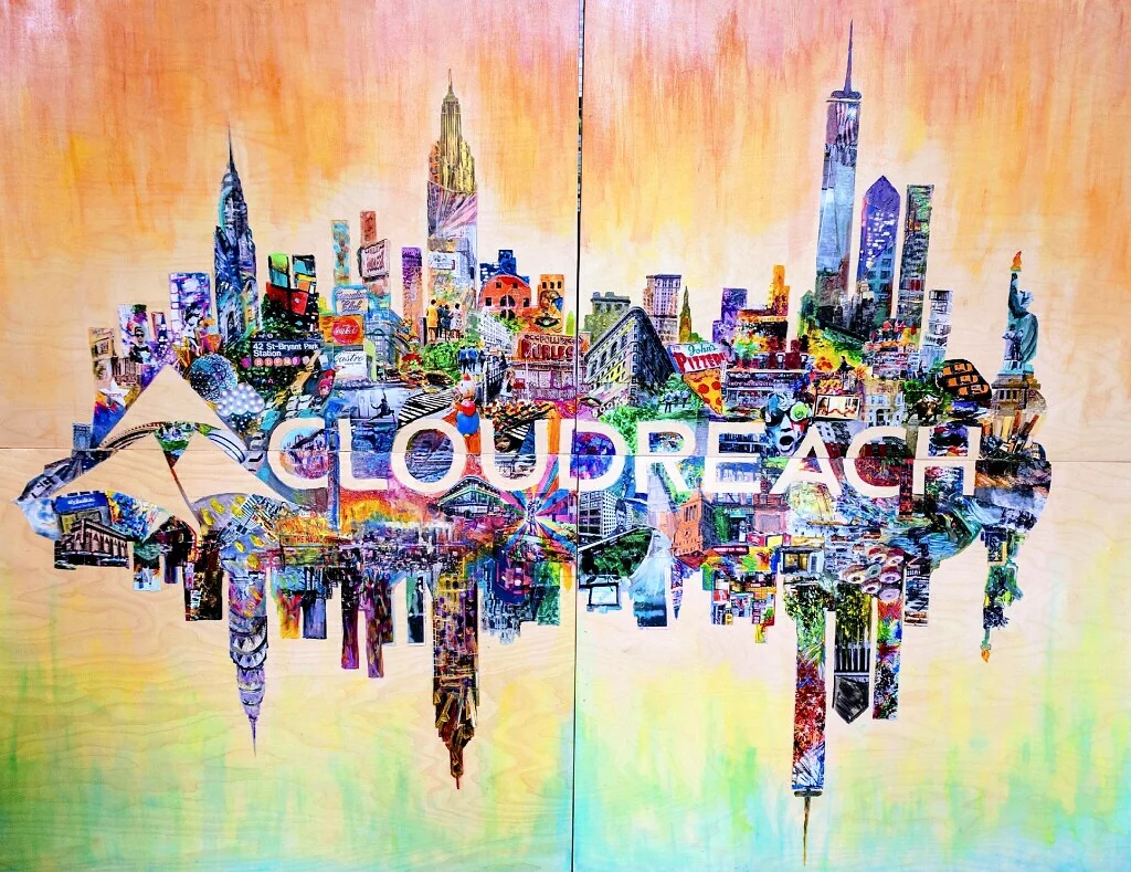 mixed media on wood, 6.7 x 5 ft. made for Cloudreach NYC.