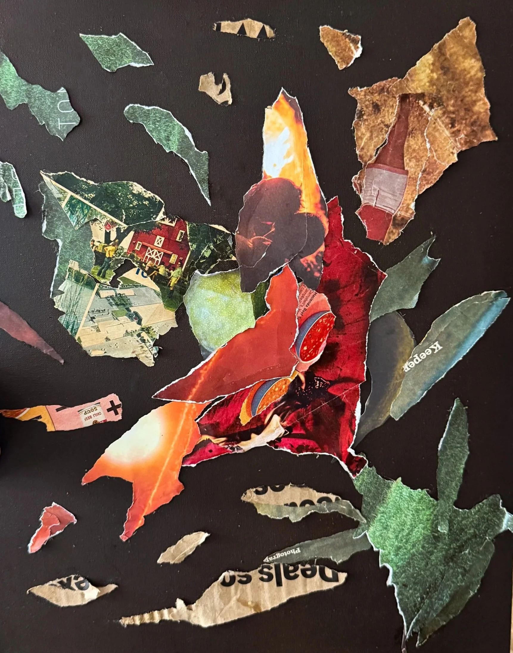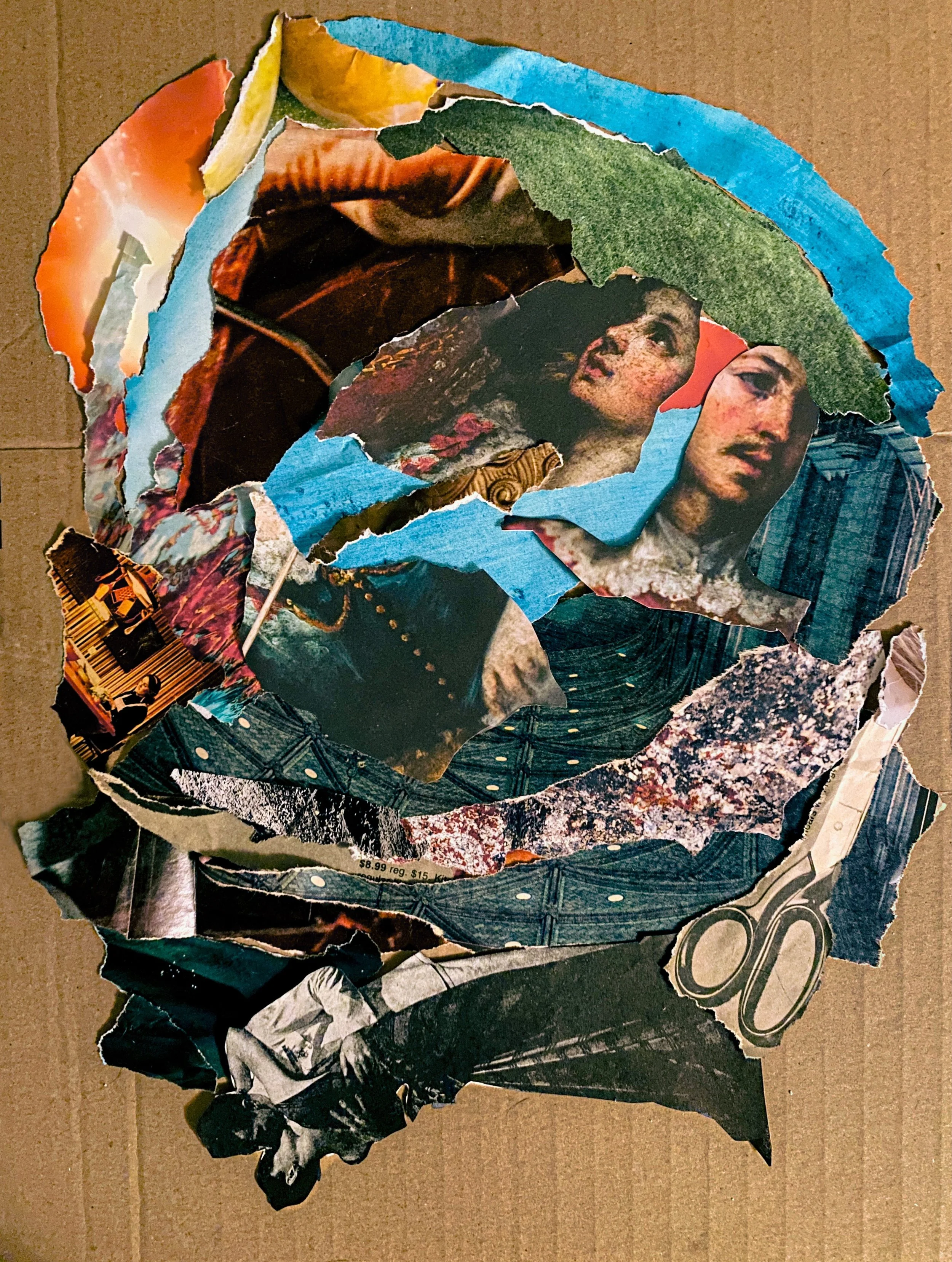 this was a take-my-life-back sort of piece. i was comparing myself to my friends, peers, and others who seemed to have their lives so put together. this made me feel completely and utterly lost. what was i doing? i moved to new york to be an artist, but it seemed like i was just too far behind. it seemed everyone around me was doing what they knew they wanted to do and had known since college. meanwhile, my degree was unrelated to my first job and my first job was unrelated to my dreams. it took going through old works, old scraps, journal entries, and good old self-reflection for me to realize how far i truly had come. so i made a piece out of those things. every item in this piece is from something i had created in the past or collected along the way. this piece would physically not be in existence if not for each and every choice i've made. going left instead of right. accepting that job, leaving that job, accepting that other job, leaving that other job. making what i thought were wrong decisions and steps backward actually propelled me forward. there are lots of hidden symbols in this piece, and it's not just a self-portrait, but a pledge of acceptance for who i am. i am my scraps!